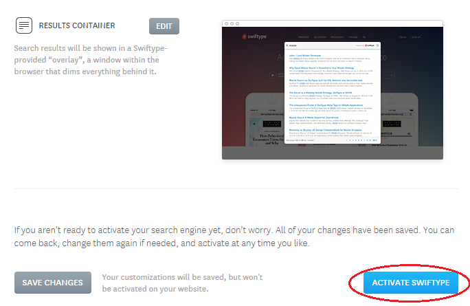 Step 12: Its almost done now just scroll down the page and click on Activate Swiftype.