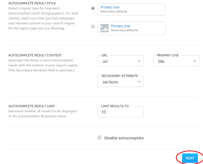 Step 8: Customize your search engine's appearance e.g search results, number of search results etc and then click on next.